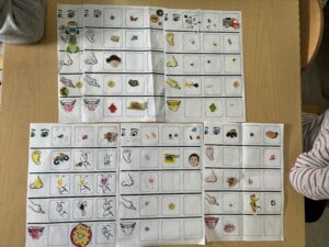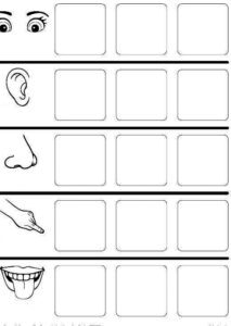 Les enfants ont reçu une fiche avec des images de cinq sens. Ils ont pu ensuite choisir l’image qui correspondait (le dessiner ou le coller) dans la bonne colonne. Certaines images pourraient parfois appartenir à plusieurs groupes, comme l’escargot. Nous nous sommes donc passées la question si on les mange ou non ?