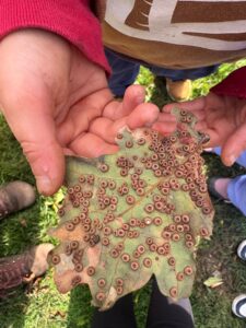 galle bouton de chêne=excroissance sur une feuille causée par la ponte d’un cynips (guêpe) !!!ne pas confondre avec la maladie la gale!!!