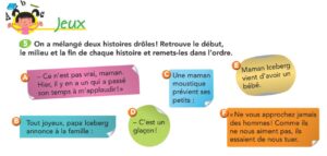– Manuel *Mots en herbe* : p. 44 *Je comprends* ex. 2 et 3 + p. 45 *Jeux* ex. 5