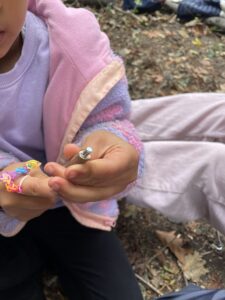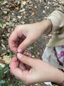 Une fois arrivés sur notre site, nous avons formé notre cercle de rassemblement pour partager et rappeler les règles. Nous avons joué au jeu de la déesse de la forêt, puis les enfants ont appris à reconnaître les glands fertiles et stériles avant de les planter  🌱.