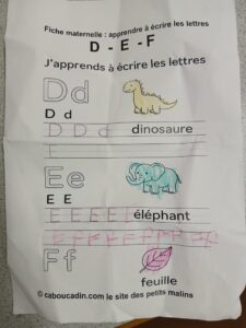 On revoit comment écrire les lettres D, E, F vus ces dernières semaines.