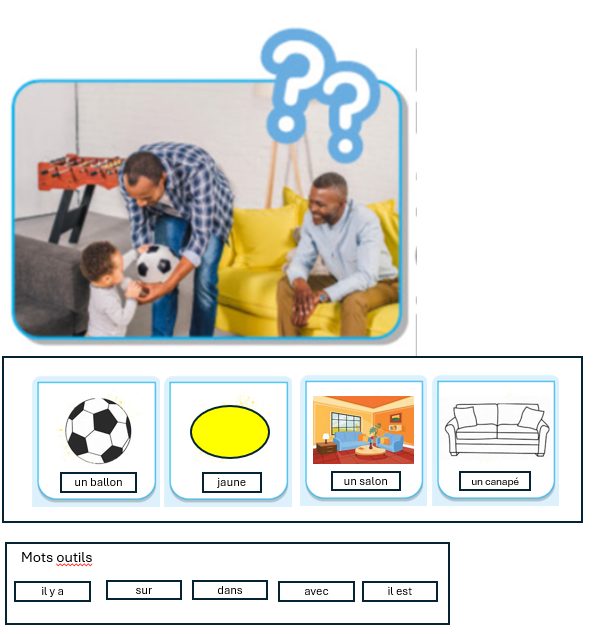 Écris 2 phrases sur ce que tu vois sur l’image. (qui? où? Action?)