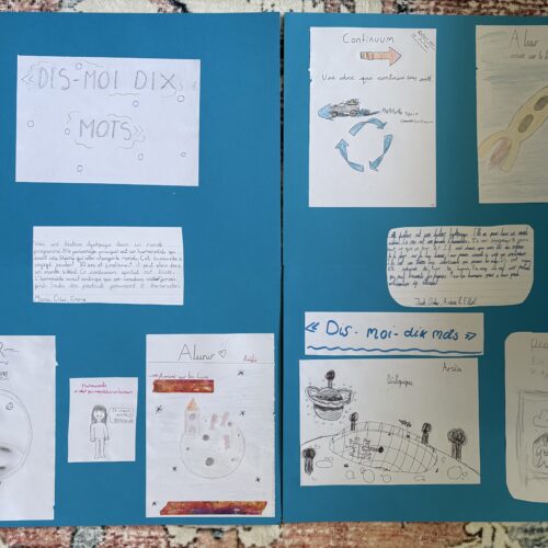 Enfin, les enfants ont repris les textes écrits à l’occasion du projet « Dis-moi dix mots d’un monde à venir » de la semaine dernière et en petits groupes, ils ont choisit les meilleures histoires qu’ils ont ensuite améliorées.