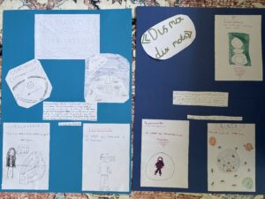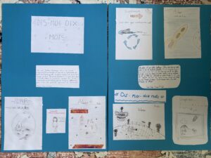 Ce main les enfants ont finalisé les affiches du projet « Dis-moi dix mots d’un monde à venir » et les ont exposés dans le réfectoire.