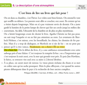 Lecture : lire le texte p.12 du cahier d’exercices